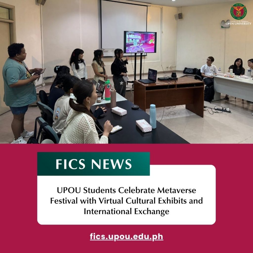 Students from the University of the Philippines Open University (UPOU) gathered on 8 May 2025–both onsite at the Multimedia Center Theater, UPOU-DICT Building, Diliman, Quezon City, and online via Zoom, to celebrate the Metaverse Festival—a two-day event that showcased student-led virtual cultural exhibits in an immersive digital environment.